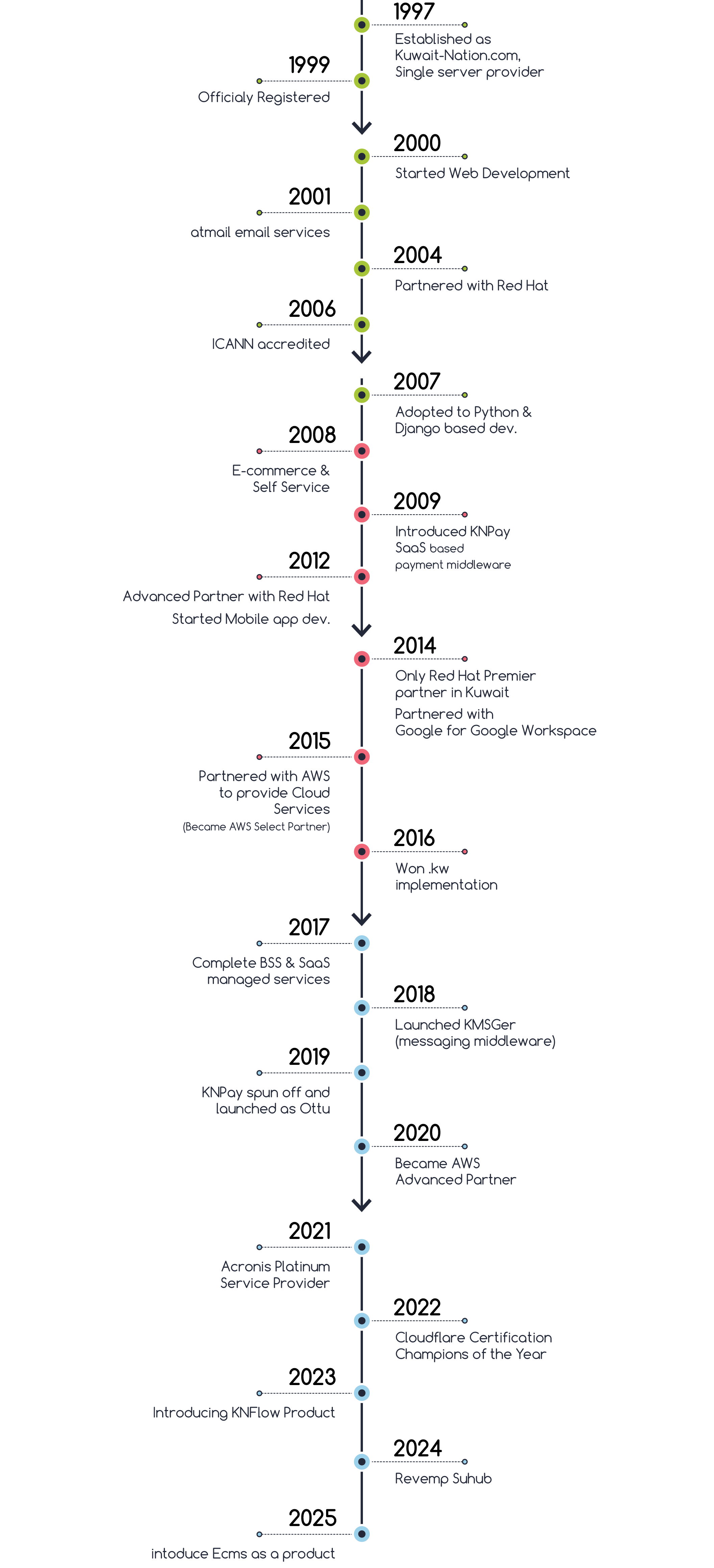 Having 20 plus years of experience in Domain and Hosting services and being the only ICANN accredited in KUWAIT, our methodology assesses digital maturity, creates a long-term roadmap and vision, defines effective business cases, develops and aligns digital skills and lays out near- and long-term blueprints for transforming IT environments. Given our experience at the heart of many digital transformation projects and being partners with international giants like Google, Acronis, Freshwork, Cloudflare, allows us to help you with IT modernization, Business restructuring, upgrade business processes and operating models into digital experiences through digital technologies, capitalizing on the digital trend.