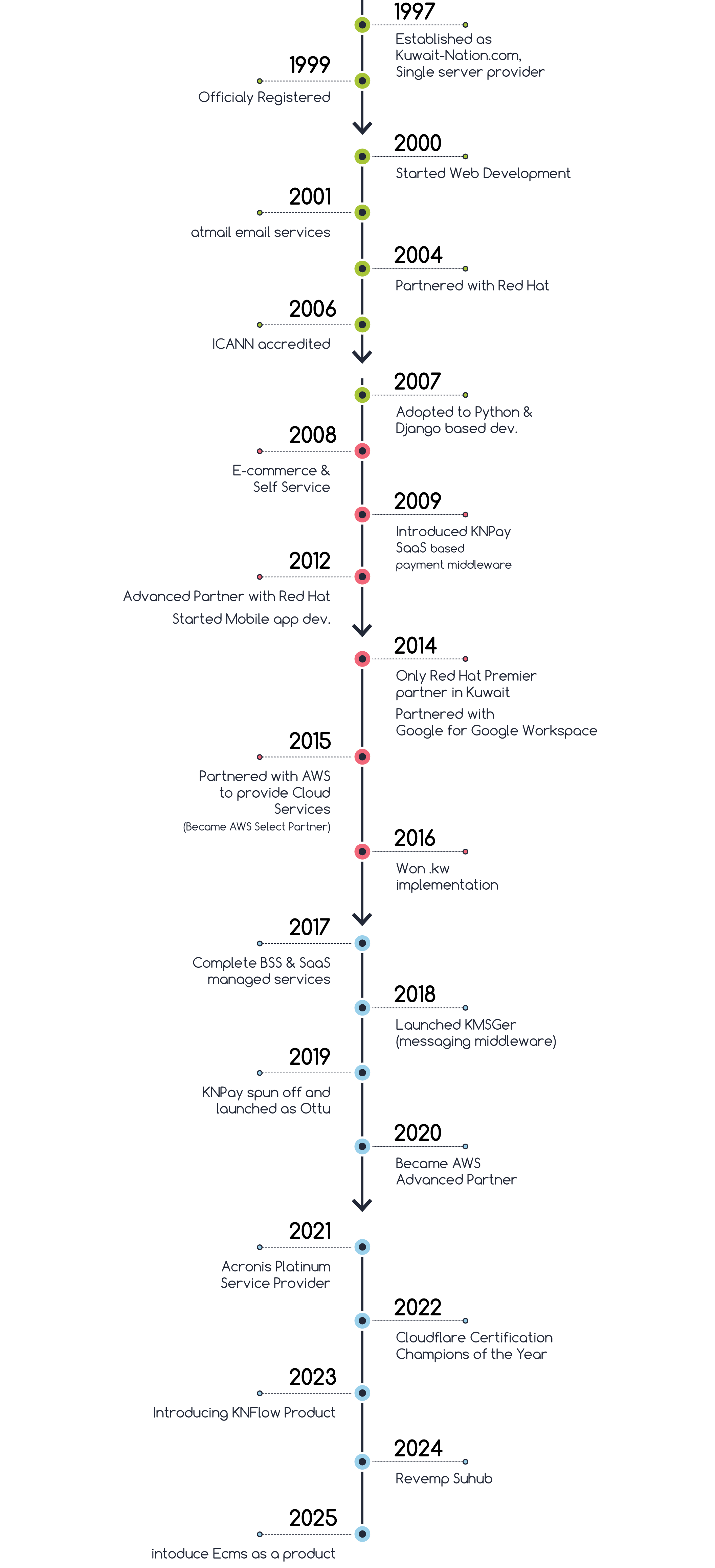 Having 20 plus years of experience in Domain and Hosting services and being the only ICANN accredited in KUWAIT, our methodology assesses digital maturity, creates a long-term roadmap and vision, defines effective business cases, develops and aligns digital skills and lays out near- and long-term blueprints for transforming IT environments. Given our experience at the heart of many digital transformation projects and being partners with international giants like Google, Acronis, Freshwork, Cloudflare, allows us to help you with IT modernization, Business restructuring, upgrade business processes and operating models into digital experiences through digital technologies, capitalizing on the digital trend.