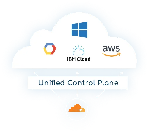 Cloudflare provides the unified control plane for the network layer across multi-cloud or hybrid cloud deployments